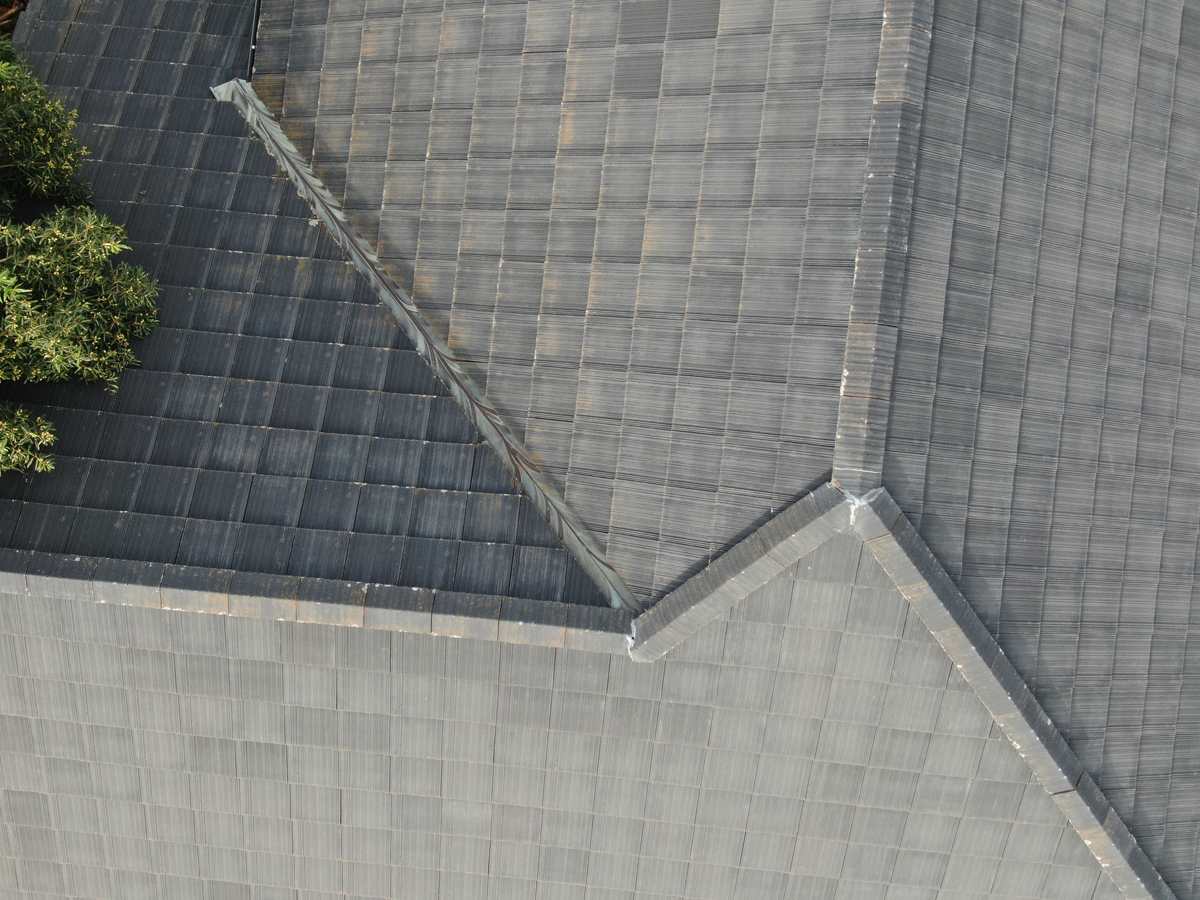 - 誰かが屋根に上 がる前に、屋根の現状を写真に残せます。屋根にハシゴを掛けて上がる前に、ドローンで屋根全体の状態を記録しておくと、屋根工事業者も後のトラブルが減るのでとってもメリットがあります。